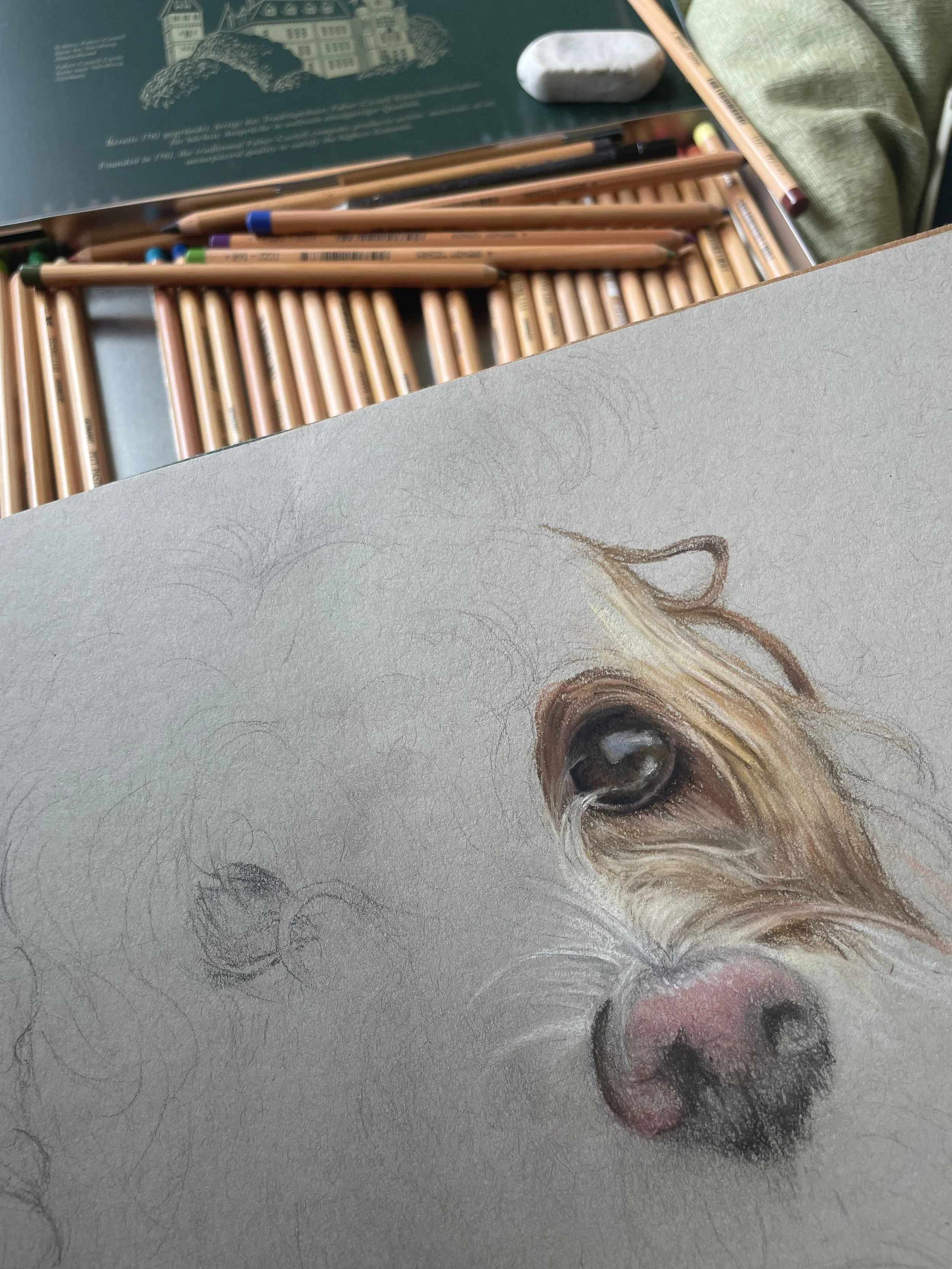 Once you have shown interest about getting your very own bespoke drawing, I will contact you via Email to discuss the basics such as size, number of subjects and who’s it for. I also want to find out about your pet! Each drawing I get to draw feels like its own story and I want to know what makes your pet so special to you so I can capture the personality that you love so much.